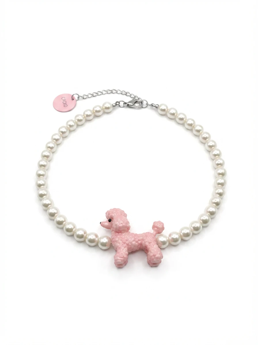 Słodki, figlarny i absolutnie nie do przeoczenia. Ten naszyjnik CACKO łączy klasyczny sznur pereł z uroczym pudlem w odcieniu pudrowego różu. Efekt? Biżuteria, która jednocześnie jest elegancka i z przymrużeniem oka.